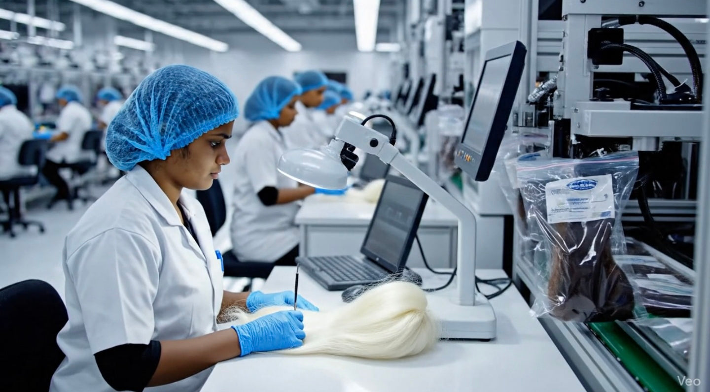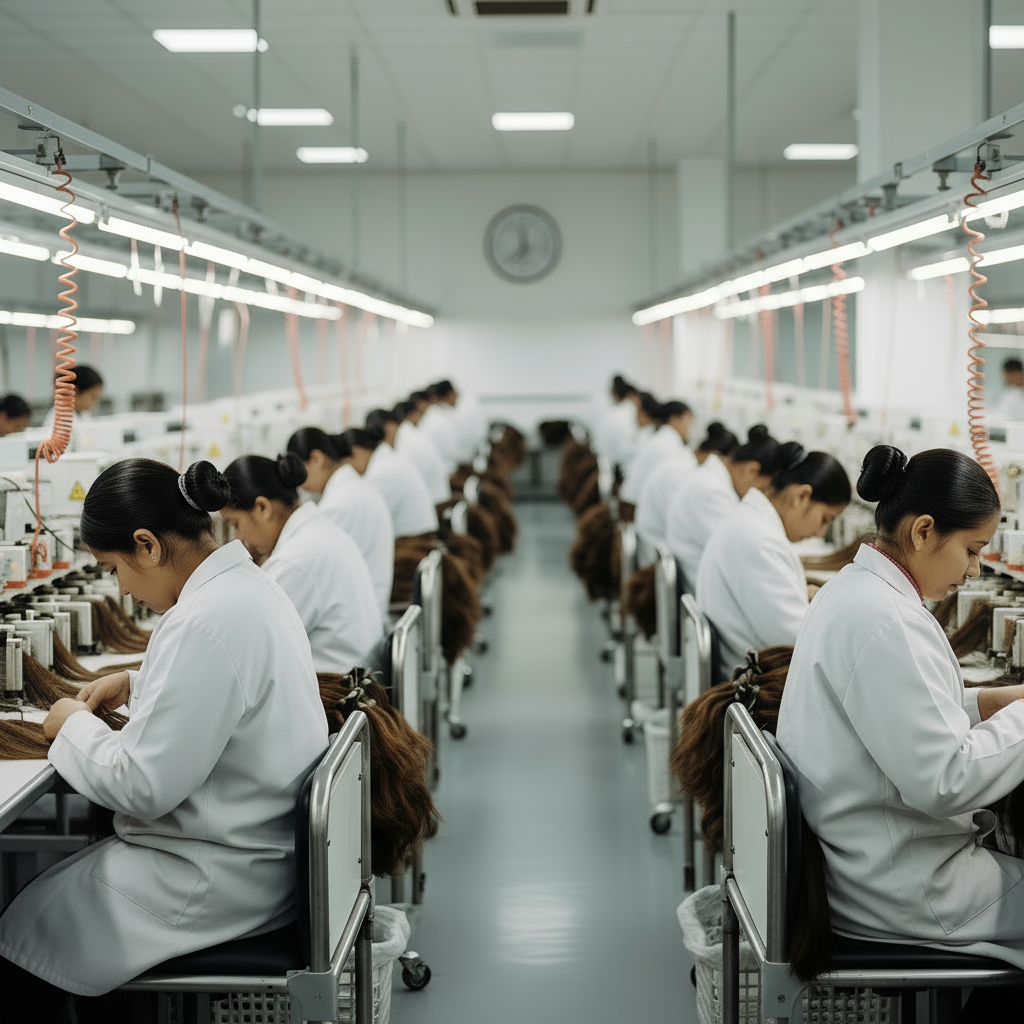 Our 100,000-square-foot Mumbai factory carefully produces most of our professional hair extension lines, with a monthly capacity of around 85,000 packs. Skilled artisans work by hand under ISO 9001 standards, using clean, organic processes to ensure every strand meets the highest standards of quality and care.