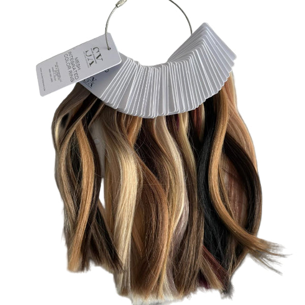 Salon Xtensions’ Mesh Integration Color Ring showcases the industry’s most vibrant and trend-defining shades, giving stylists an extensive palette to craft every client’s perfect look. Each color is meticulously curated to ensure our closures match the ring precisely, creating seamless, natural blends that elevate results and maximize client satisfaction.