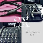 Elevate your extension services with the SalonX Black Pro Tool Kit—a sleek, all-inclusive set designed for stylists who demand precision, comfort, and style. Each tool is crafted from ergonomic steel for weighted comfort to reduce fatigue and improve control during long installs, all housed in a luxurious black leather case for ultimate organization and professionalism.