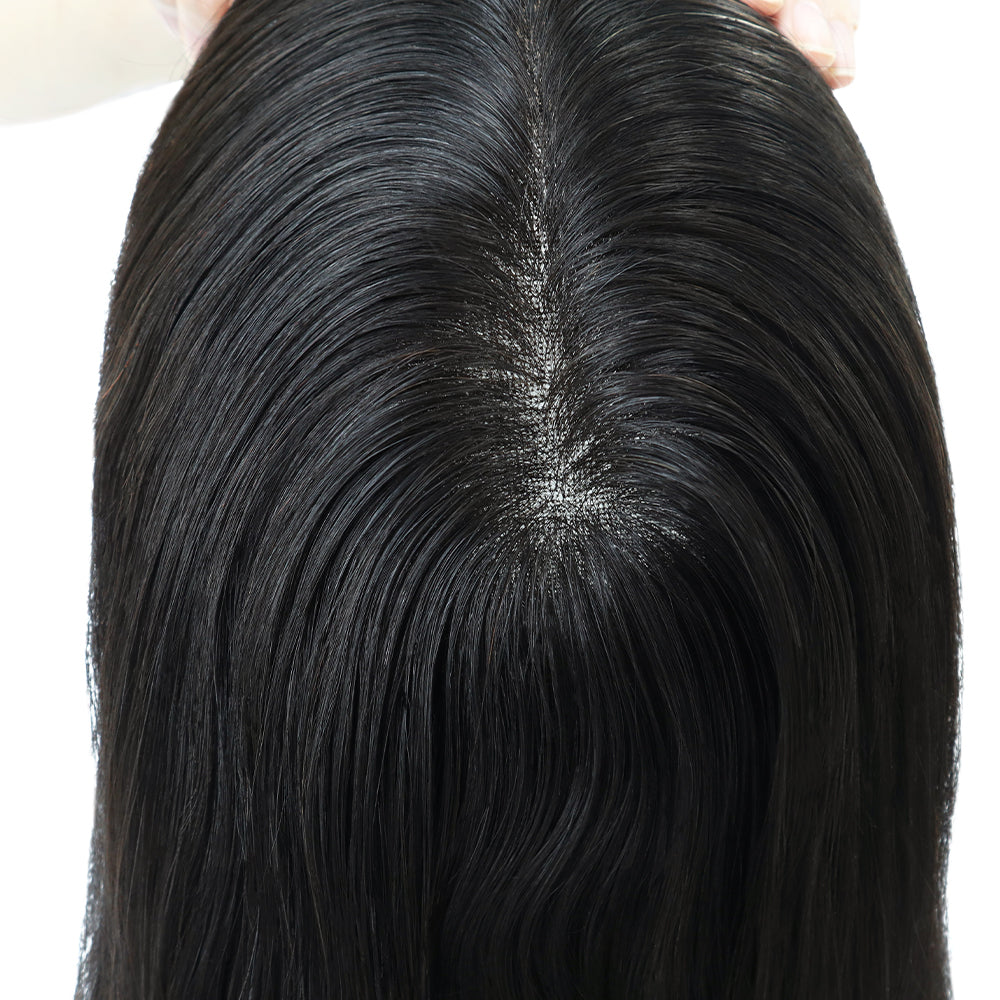 The Salon Xtensions Women’s Topper (Model SXQ6L) from our premium line delivers beautifully natural coverage with lightweight comfort and professional-grade design. Crafted for clients seeking volume and realism, this topper combines French lace artistry with durable poly reinforcement for a secure, breathable fit.