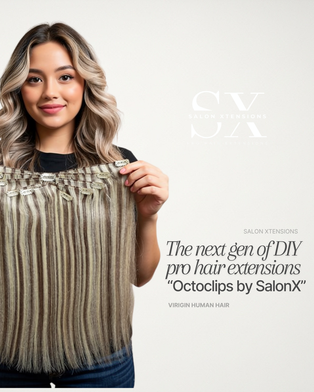 Introducing SalonX Octoclips — the modern evolution of clip-in extensions designed for stylists and everyday wearers who demand professional results without the time commitment.